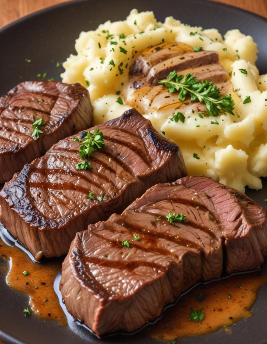 This dish is a perfect balance of rich, buttery steak bites and creamy mashed potatoes. Comfort food at its finest—enjoy!