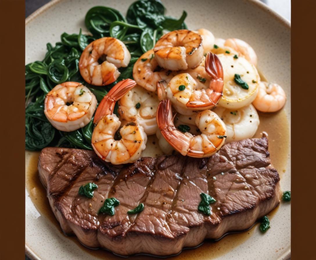 Here’s a recipe for Steak and Shrimp Surf & Turf with Mashed Potatoes, a luxurious dish combining tender steak and succulent shrimp, paired with creamy mashed potatoes for a comforting, elegant meal.